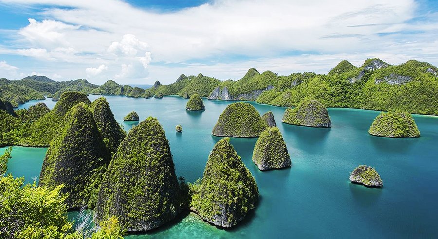 Next, fly from Labuan Bajo to Sorong to begin your Raja Ampat boat tour. Cruise through calm seas surrounded by limestone cliffs and hidden lagoons. Visit Wayag and Pianemo for breathtaking panoramic views, and snorkel among coral gardens teeming with tropical fish. Explore Kabui Bay’s serene waters and admire the incredible biodiversity that makes Raja Ampat world-famous. Because this region is remote and pristine, it provides a rare sense of peace and discovery.