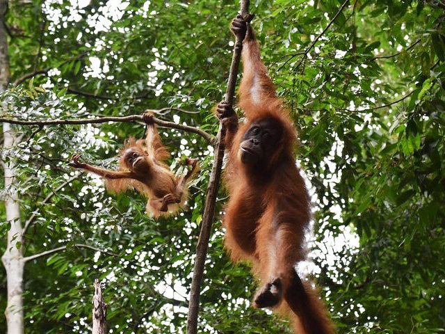 Transfer to the airport for a flight to Pangkalan Bun. Upon arrival, continue to Kumai harbor and board a traditional klotok river boat. Cruise along the Sekonyer River surrounded by tropical rainforest.